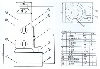 SY-2型廢氣凈化塔外型規格及技術指表: