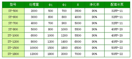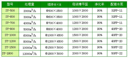 SY-1型廢氣凈化塔處型規格及技術指表:
