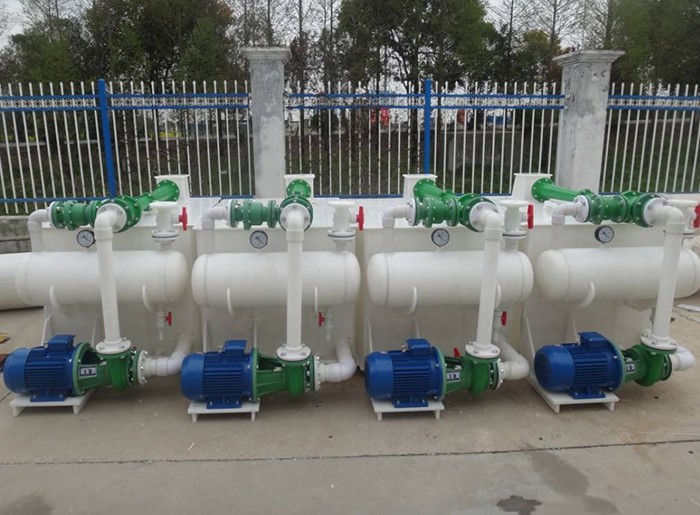 聚丙烯PP真空機組體積小,結(jié)構(gòu)緊可移動,噪音低,能耗低便于綜合利用。水汽串聯(lián)噴射真空機組,耗氣量小可獲得更高的真空度,工作穩(wěn)定,使用方便。在安裝使用前,須仔細檢查各部位緊固件是否松動,若有松動須校正擰緊。開機前水池須加滿水,打開泵進口閥,嚴(yán)禁脫水空轉(zhuǎn)及反轉(zhuǎn),以防止損壞機封和泵。停機前先放空或真空度降至0.092Mpa以下,然后停機以防真空度過高,倒吸易損壞止回閥,(如止回閥失靈,請打開止回閥蓋,清除雜物)。